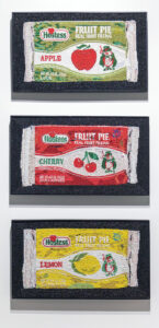 Seattle’s Electric Coffin (Duffy de Armas and Stefan Hofmann) lightens up the show with “Tasty Cakes” (Hostess brand fruit pies) and a Krylon spray paint can series of small bead works on canvas. This show plays true blue through the middle of January. ♦