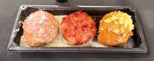 The second top food was Three Little Pigs offered by Whatcha Smokin BBQ, which hails from small-town Luther, north of Des Moines. The Three Little Pigs consist of a trio of smoked ham balls with nostalgic flavors, including honey mustard with cornbread crumbles, cherry soda with Maraschino cherries and a vanilla glaze dusted with powdered sugar.