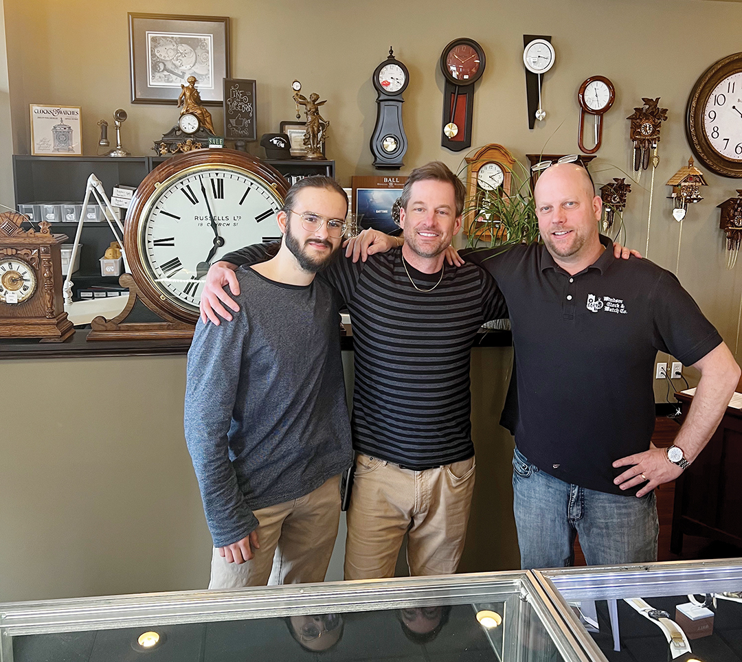 Parker Boughton, Phil Squiers and Jeff Goemann at Windsor Clock and Watch Co. take time to make sure that the intricate work of clock and watch repair is done properly.