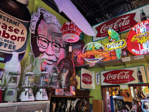 Antique signs, lighting, furniture and decor are among the items found at A Okay Antiques.