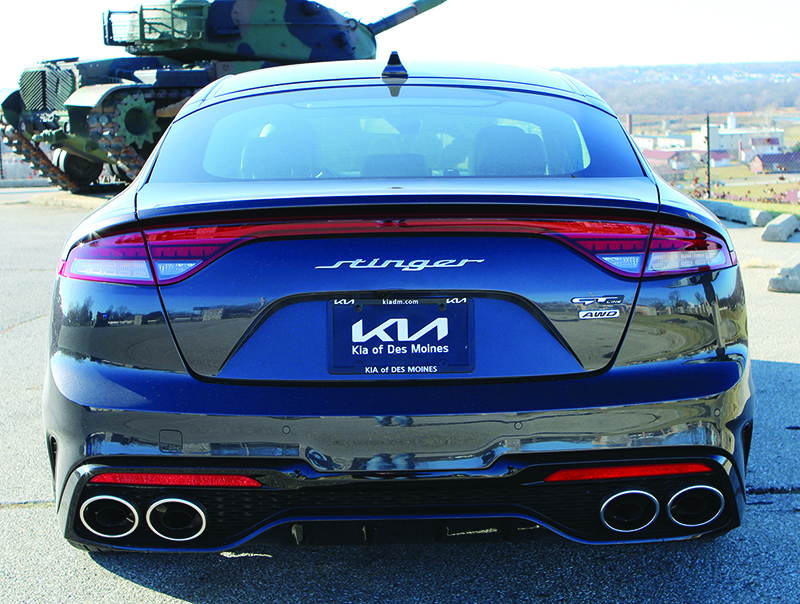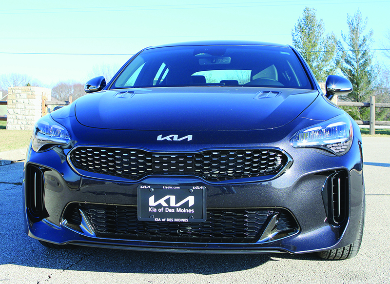 I test drove the 2022 Kia Stinger. It’s a 4-wheel GT line sedan. First off, I liked the color of the car — a Panthera metal that is sparkle-flecked gray. It seems to stand out among the sea of gray-colored vehicles. Next time you’re in a parking lot, take a look at all the 50 shades of gray vehicles.
