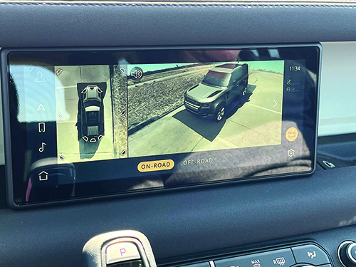 It’s a little climb getting in, but after adjusting the seat, check the 11.4-inch screen to see what’s around you. The 3-D surround camera views are notable. These safety features ensure no other vehicle, obstacle, person or hazard is around to collide with you. On the screen, you can see a 360-degree view of your vehicle including what’s behind it, beside it and on top of it. It’s like there’s a filmmaker monitoring your every move.