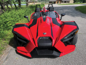 The passenger is king. In a motorcycle, a passenger views the back of the driver’s head. In a Slingshot, both the driver and passenger experience the same open-road feel.