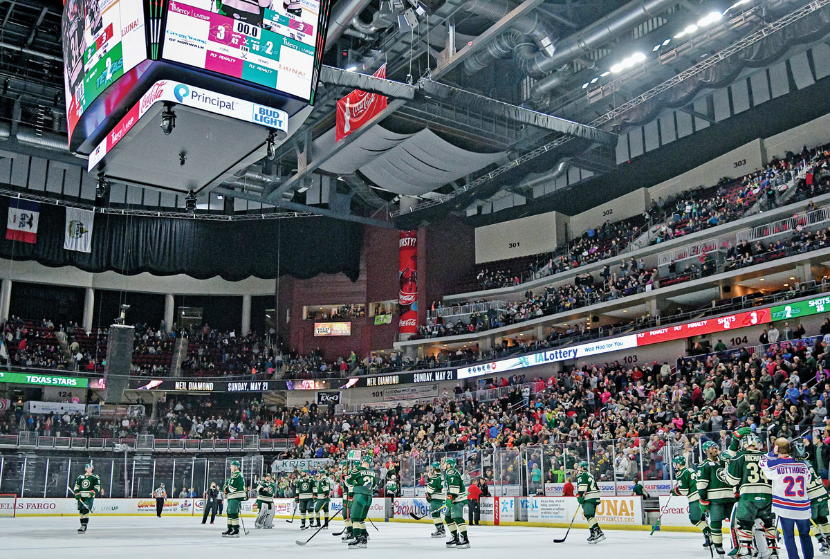 The Iowa Wild ice hockey team of the American Hockey League hosts Rockford for its home opener at Wells Fargo Arena, 7 p.m., Oct. 4. Photo courtesy of the Iowa Wild