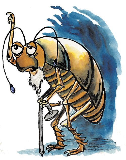 The waterbug had grown old and weary. And he was alone. He was the only one of his kind left in the house. He knew he would never survive the next spring cleaning. He could not scurry away from the poison sprays anymore. Still, the waterbug had been so clever in his youth, and he had lived so long, that now he was the senior creature in the house. He knew that he had a last duty to perform.