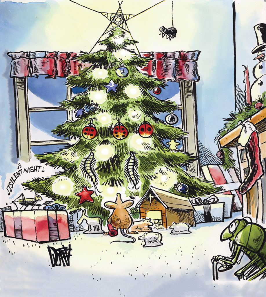 It was a full-scale revolt. The old waterbug could only draw a painful breath and thunder at the creatures: “Stop! This is quite enough. Creatures have always obeyed the Tradition on Christmas Eve. It’s been handed down from generation to generation. I don’t know why, and I don’t know what it means, but there will be no stirring of creatures in this house on Christmas Eve! Is that understood? I am senior creature here, and you will answer to me!”