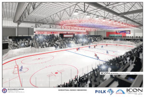 The site will have four total rinks — that number includes the featured rink that the Bucs will play on. An attached hotel is also in the works. Organizers envision a space that could attract regional or national hockey tournaments and concerts. Teut points out that the area lacks a mid-tier music venue of this size, and he says this venue could fill a void.