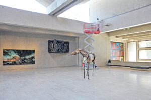 Teresita Fernandez, “Viñales(Chasm),” 2022; Phyllida Barlow, “Untitled: balcony,” 2012; Deborah Butterfield, “Untitled (Hoover),” 1986; Sol Lewitt, “Wall Drawing #601, Forms Derived from a Cube (25 Variations),” 1989