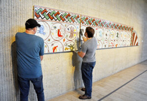 “We had 220 pieces. We started in February. Someone went down to Mexico City and measured everything, and we pre-cut all the mats ahead of time, and then we framed them all. That was very time-consuming, but we were ready when the time came to hang them on the walls,” Meinders said.
