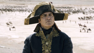 “Napoleon” begins in 1789, when Marie Antoinette is guillotined in the French Revolution, while a young gunnery officer, played by Joaquin Phoenix, watches with the heavy-lidded sneer he will adopt for much of the film. The Republic’s new leaders are afraid of being ousted by Royalists or invading Brits, so they send this scruffy Corsican soldier to the town of Toulon to liberate a fort occupied by British soldiers. Just as he is about to attack, he adjusts his famous hat from a jaunty off-center angle to a neat symmetrical one — and so it is that he begins his rise to greatness. Against a stunning backdrop of large-scale filmmaking orchestrated by legendary director Ridley Scott, “Napoleon” is an original and personal look at Napoleon’s origins and his swift, ruthless climb to emperor, viewed through the prism of his addictive and often volatile relationship with his wife and one true love, Josephine.
