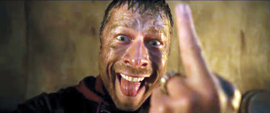 The burden of carrying this shaky foundation falls heavily on Glen Powell. While he is clearly giving it his all, the performance often misses the mark. He is dialed to a hundred from the start, shouting, sweating and swearing his way through scenes that require nuance. Unlike Arnold Schwarzenegger’s iconic, larger-than-life portrayal in the 1987 version, Powell’s Ben Richards strives for an everyman quality, but the script and his own choices prevent him from achieving the necessary depth. He feels like a theater kid lost in this shuffle in a big boy role, lacking the ego that defines a true 1980s action star.
