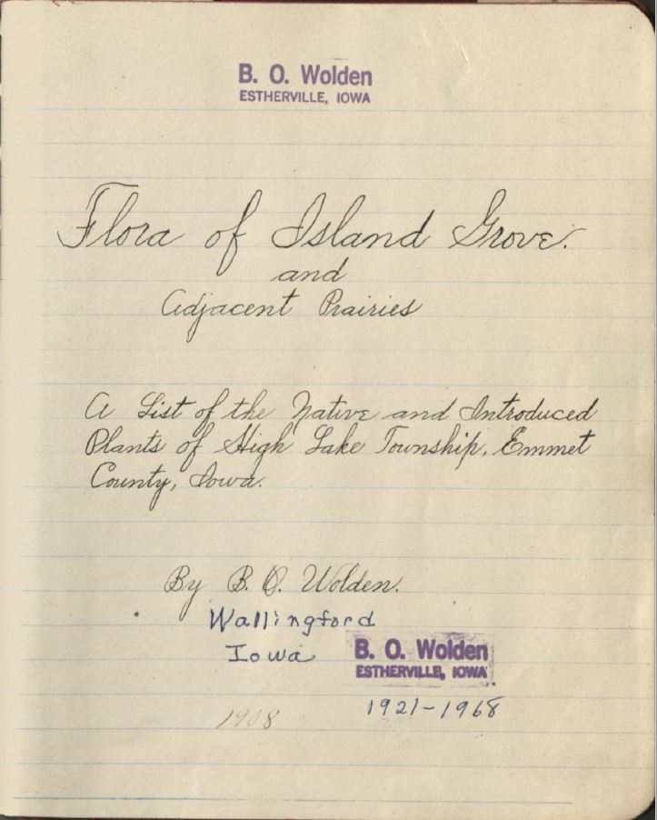Flora of Island Grove and Adjacent Parries, By B.O. Wolden