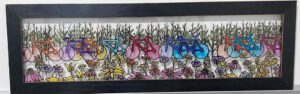 She often uses upcycled materials. She’ll scour thrift stores, secondhand and consignment shops for unique frames. Carlson often discovers a framed art piece and rips out the old art. Frames give her inspiration for her next painting.