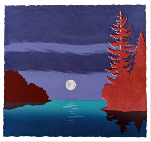 Silk screen historically was used as a way to transfer images on stretched pieces of silk. Jonathan fashions a reproducible stencil, made of a wood-cut block print, with copper edging. Multiple layers of wood-cut stencils are put on Indian ink and then applied on a canvas or thick paper. Most people aren’t familiar with the history of printmaking.
