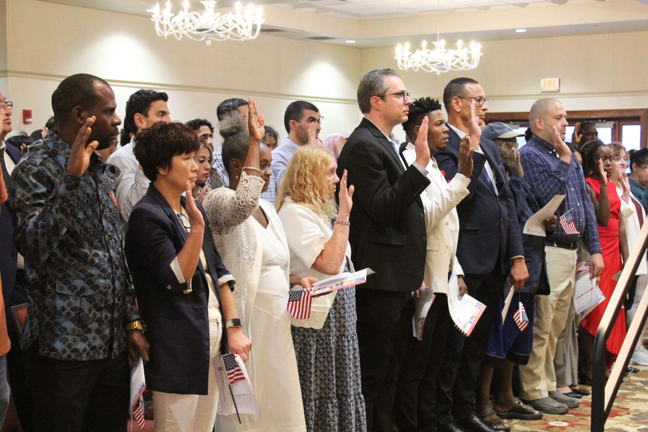 The new U.S. citizens originated from 34 countries from Bangladesh to Zambia. The oldest person sworn in was 76 and the youngest 19.