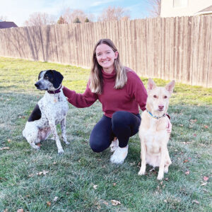 Morgen Stenroos with her dogs, Aspen and Zaika.