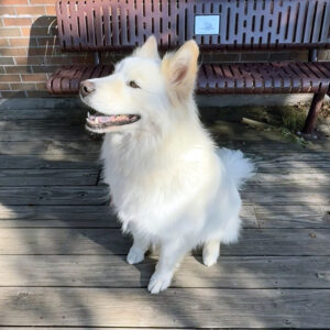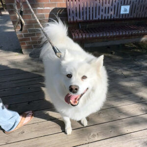 Shortly after that, they rescued a puppy mill dog from a shelter. They traveled to Cedar Falls to obtain Keeva, a Samoyed with white, thick fur.