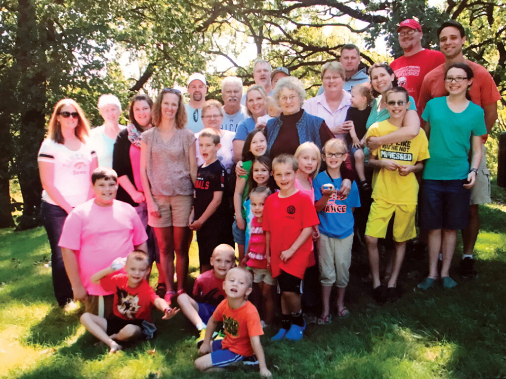 Iris Swanson lives within 2 miles of 28 immediate and extended family members. Pictured is an annual Swanson family reunion, circa 2014. Photo submitted